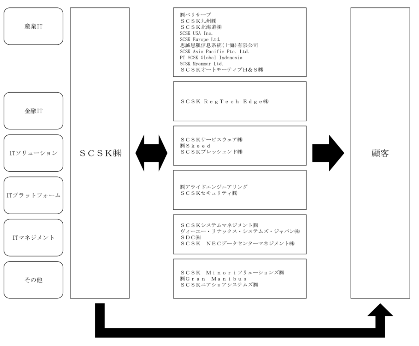 | 産業IT | ・㈱ベリサーブ ・SCSK九州㈱ ・SCSK北海道㈱ ・SCSK USA Inc. ・SCSK Europe Ltd. ・思誠思凱信息系統(上海)有限公司 ・SCSK Asia Pacific Pte. Ltd. ・PT SCSK Global Indonesia ・SCSK Myanmar Ltd. ・SCSKオートモーティブH&S㈱ |